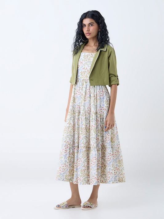Bombay Paisley Off-White Cotton Tiered Dress with Jacket