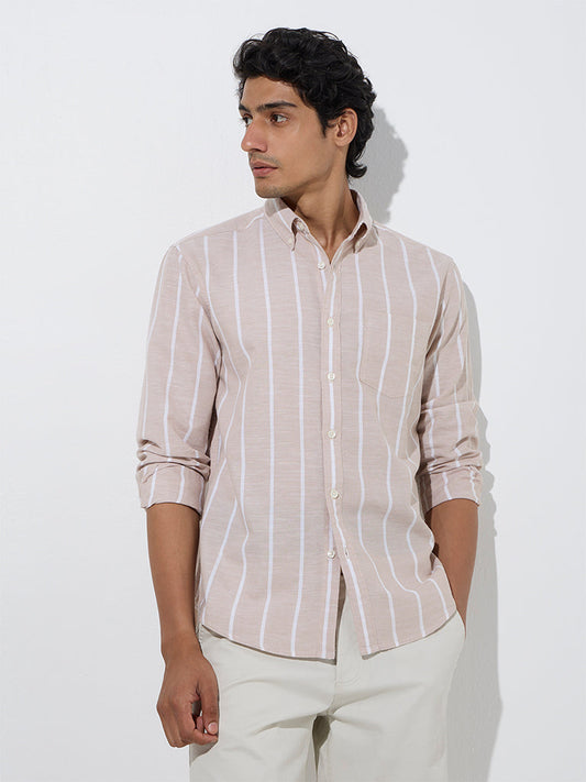 WES Casuals Beige Striped Relaxed-Fit Cotton Shirt