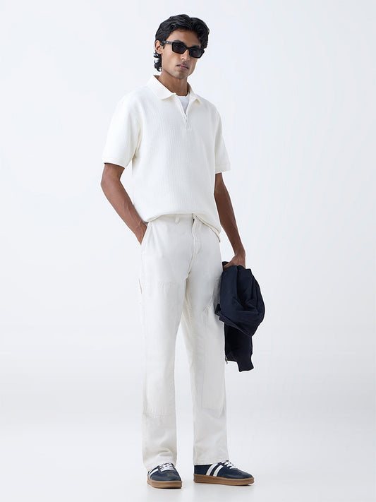 WES Casuals Off-White Relaxed-Fit Three-Quarter Zip T-Shirt