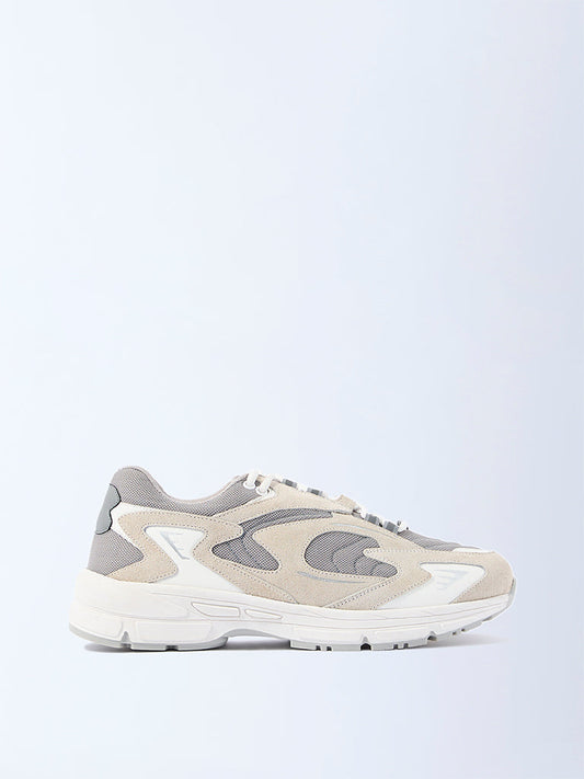 SOLEPLAY Beige Mesh-Detailed Suede Sneakers