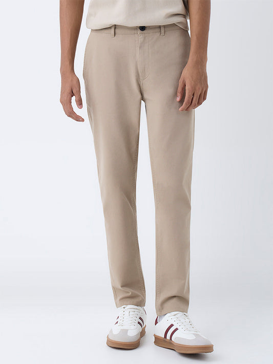 Nuon Beige Solid Relaxed-Fit Mid-Rise Cotton-Blend Chinos