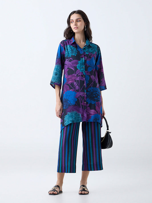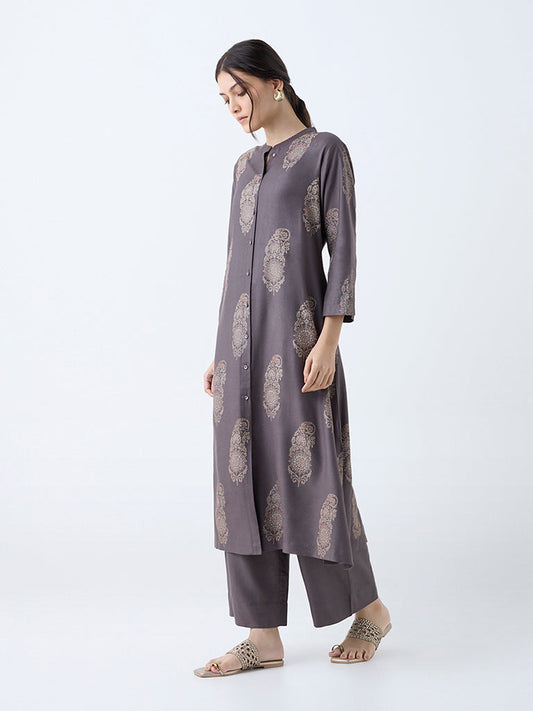 Utsa Maroon Foliage Pattern A-Line Kurta