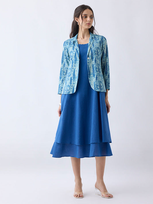 Utsa Blue Botanical Printed Cotton Jacket