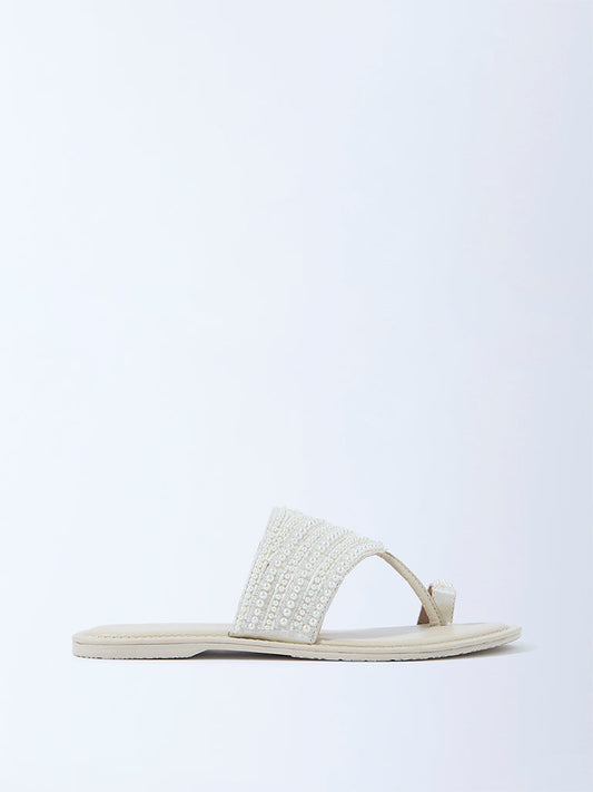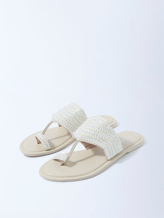 LUNA BLU Ivory Pearlescent Kolhapuri Sandals