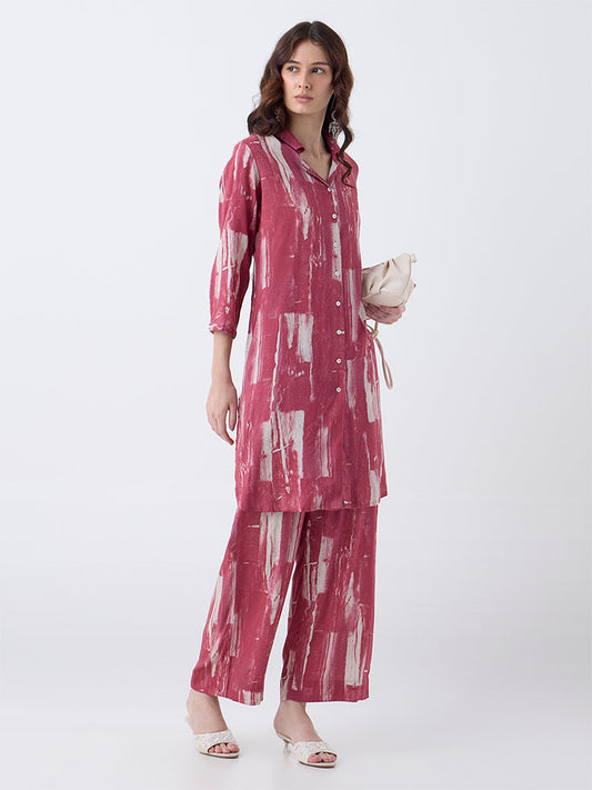 Utsa Red Abstract Design Pants