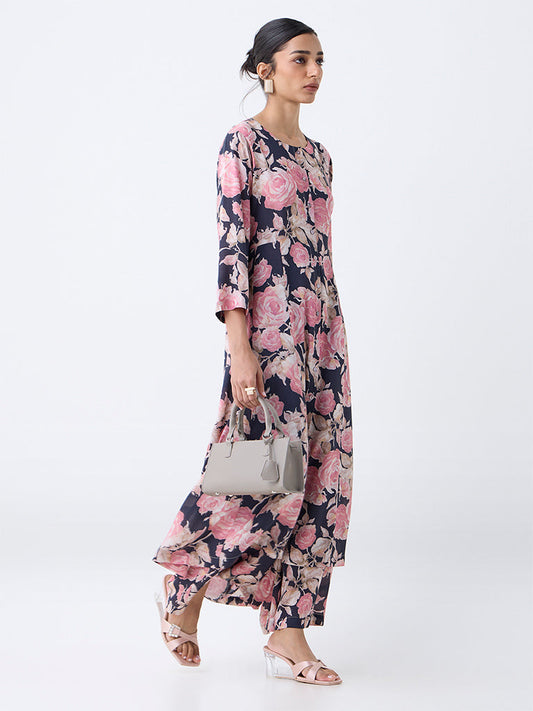 Zuba Black Floral Pattern A-Line Kurta
