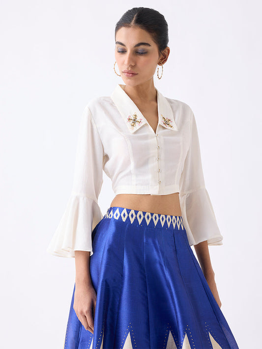 Vark Dark Blue Zari Embroidered Ethnic Blouse