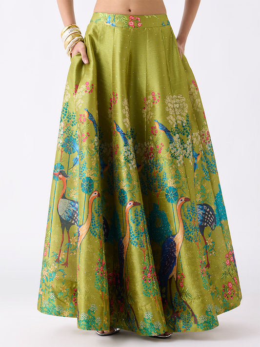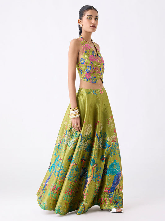 Vark Lime Floral Embroidered A-Line Ethnic Set