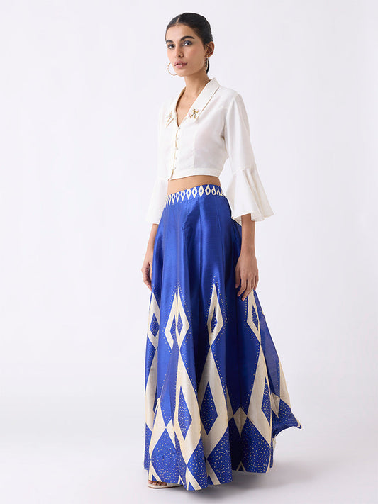 Vark Blue Diamante Embellished A-Line Ethnic Set