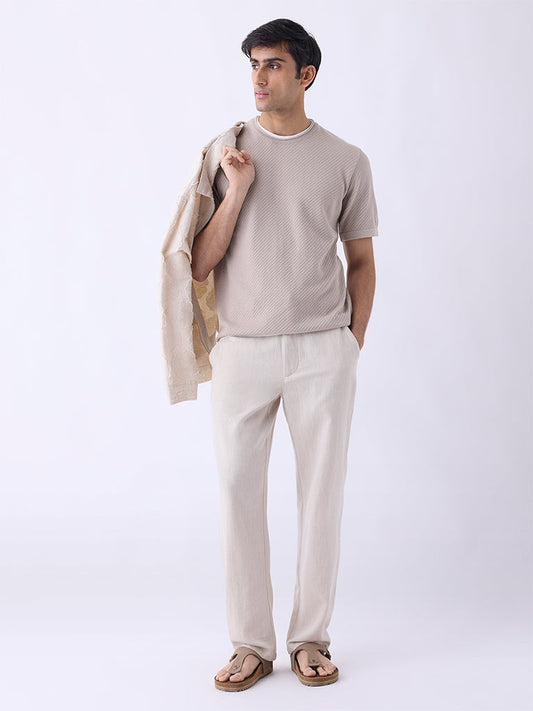 ETA Beige Solid Relaxed-Fit Mid-Rise Pants