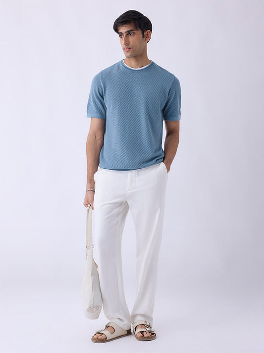 ETA Dusty Blue Woven-Textured Relaxed-Fit Cotton T-Shirt