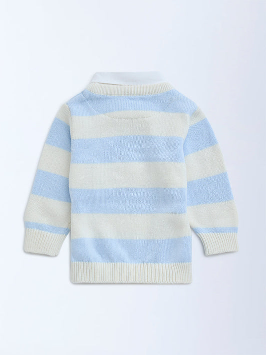 HOP Baby Blue Striped Cotton Sweater