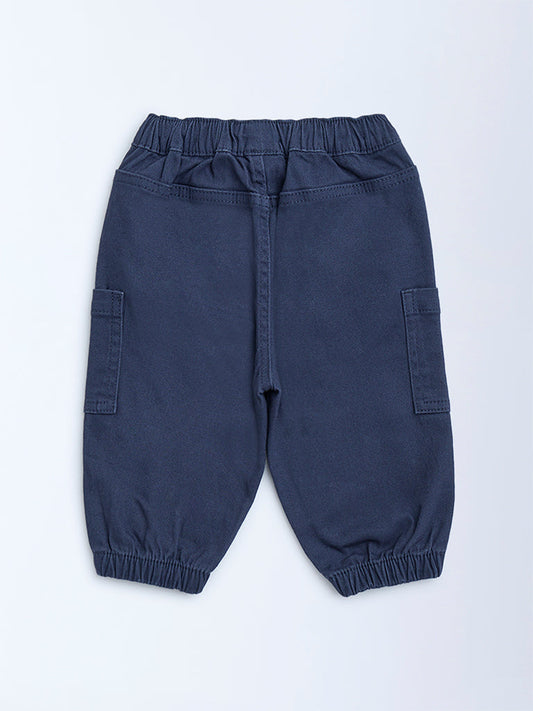 HOP Baby Navy Mid-Rise Cotton-Blend Trousers