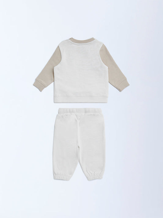 HOP Baby Off-White Cotton Sweater and Joggers Set