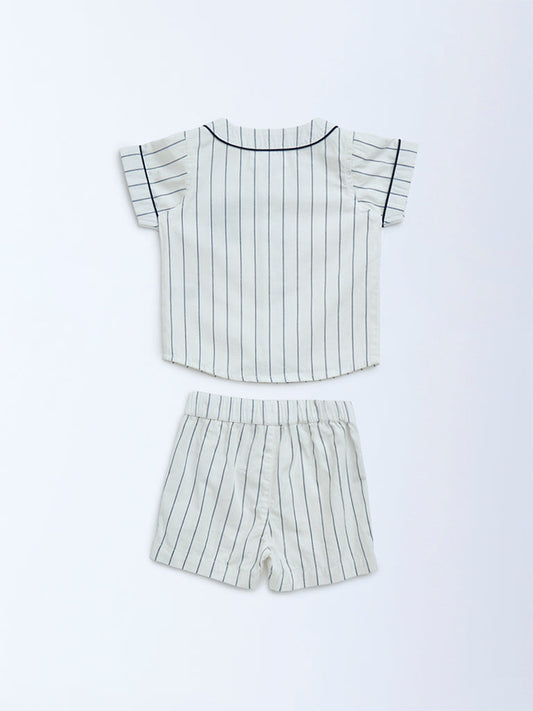HOP Baby White Striped Cotton Shirt and Shorts Set