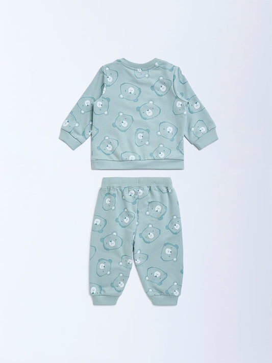HOP Baby Sage Animal Design Cotton T-Shirt and Joggers Set