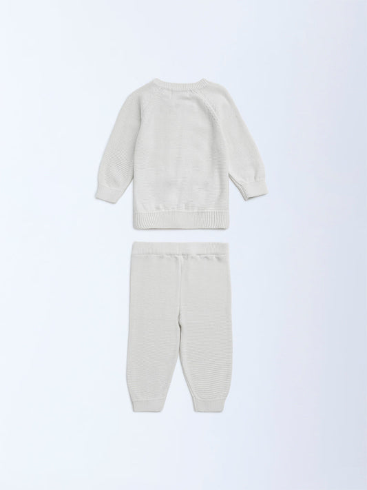 HOP Baby Off-White Cotton Sweater with Joggers Set