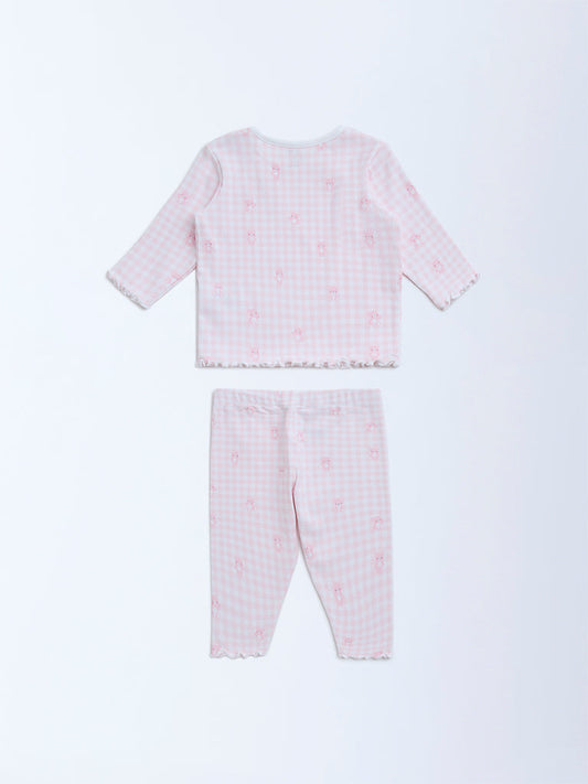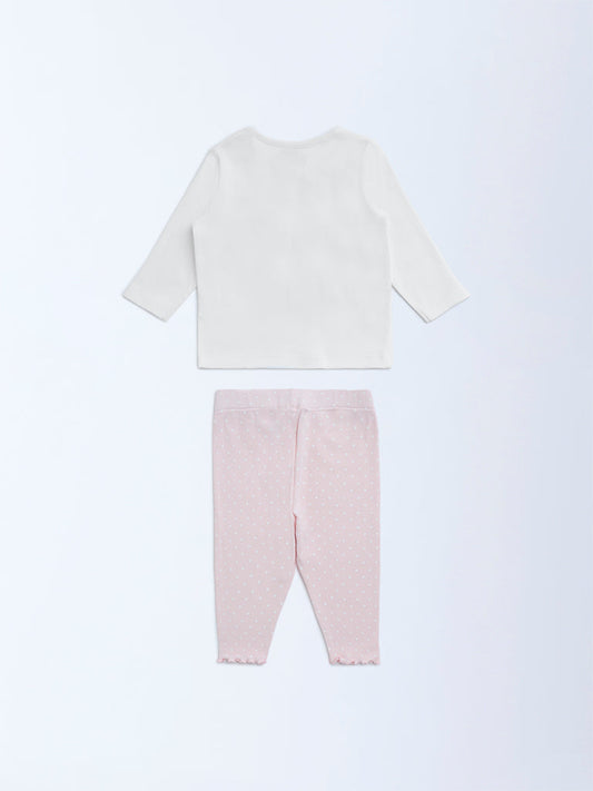 HOP Baby Light Pink Cotton-Blend T-Shirt with Pants Set
