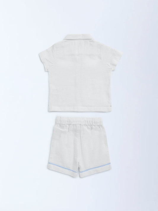 HOP Baby White Waffle-Textured Cotton Shirt with Shorts Set