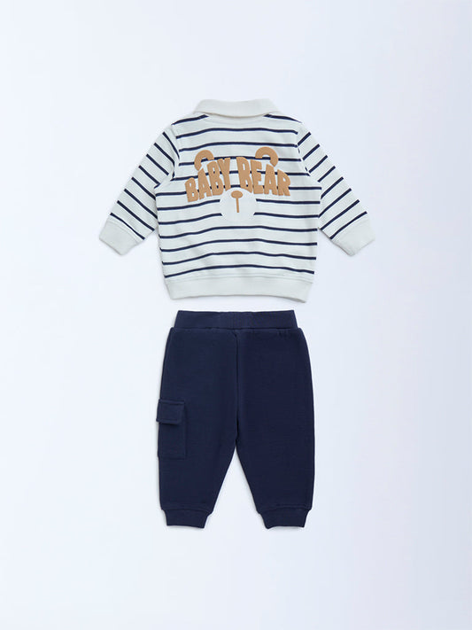 HOP Baby Navy Striped Cotton Sweatshirt and Pants Set