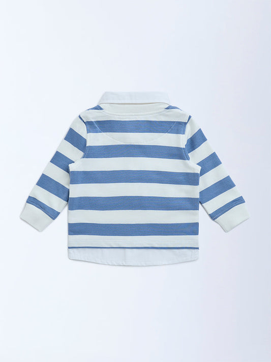 HOP Baby Dusty Blue Striped Cotton T-Shirt