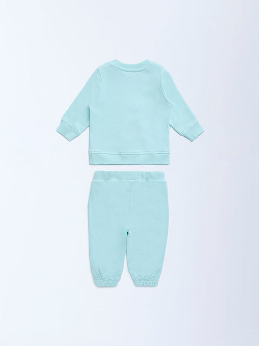 HOP Baby Aqua Polar Bear Design Cotton Sweatshirt with Joggers Set