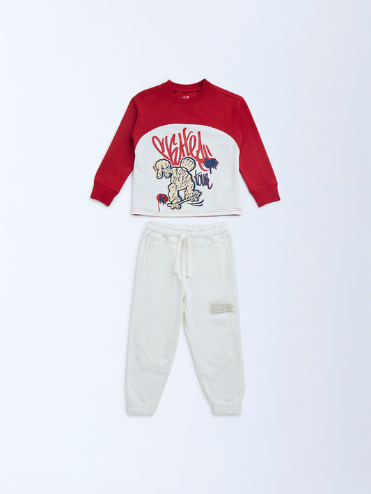 HOP Kids Red Printed Cotton-Blend Sweatshirt and Joggers Set