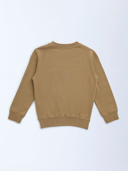 HOP Kids Taupe Embossed Cotton Sweatshirt