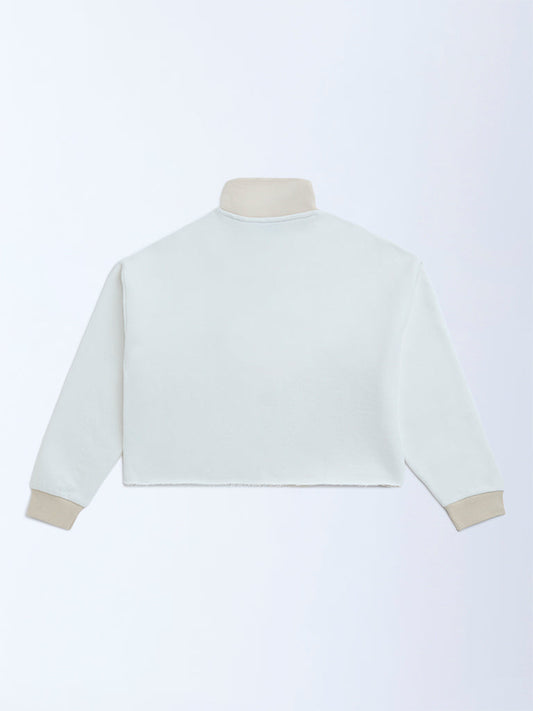 Y&F Kids Beige Cotton-Blend Three-Quarter Zip Sweatshirt