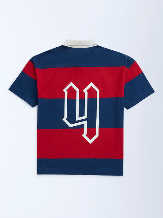 Y&F Kids Navy Colour-Blocked Cotton Polo T-Shirt