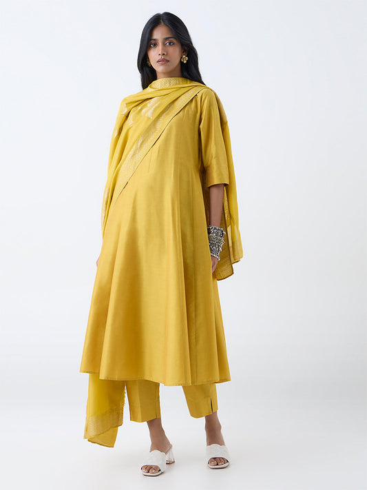 Vark Mustard Foliage Printed A-Line Ethnic Set