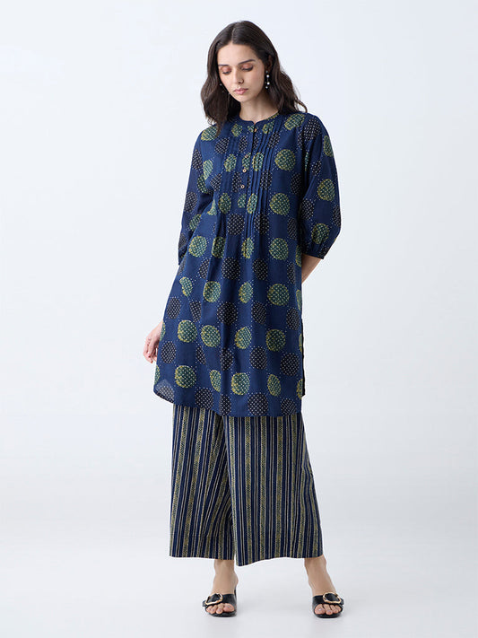 Utsa Navy Badla Printed Straight Cotton Kurta