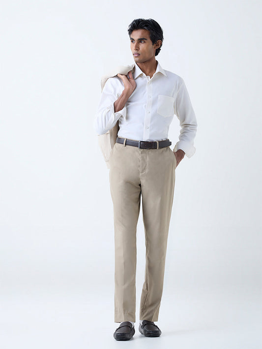 WES Formals Beige Slim-Fit Cotton-Blend Shirt
