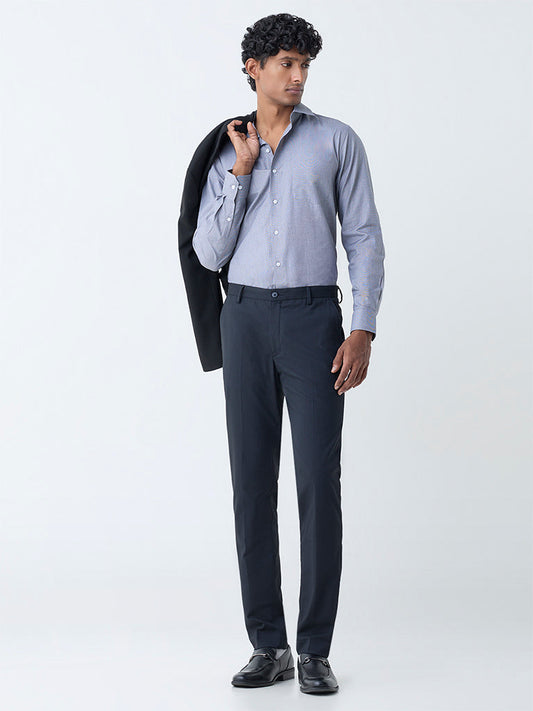 WES Formals Navy Solid Ultra-Slim Fit Cotton-Blend Shirt