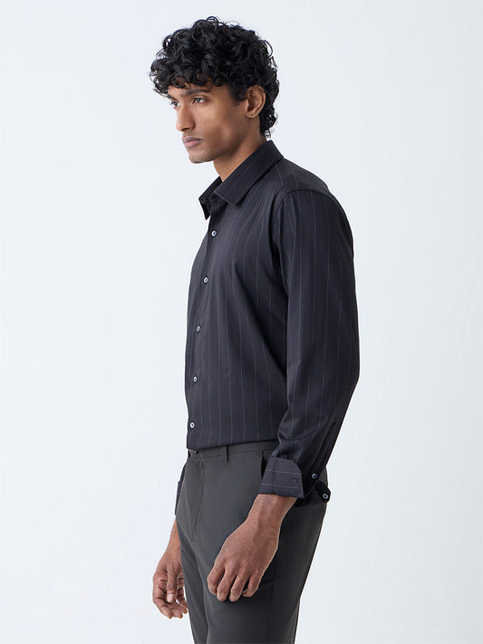 WES Formals Black Pinstriped Slim-Fit Shirt