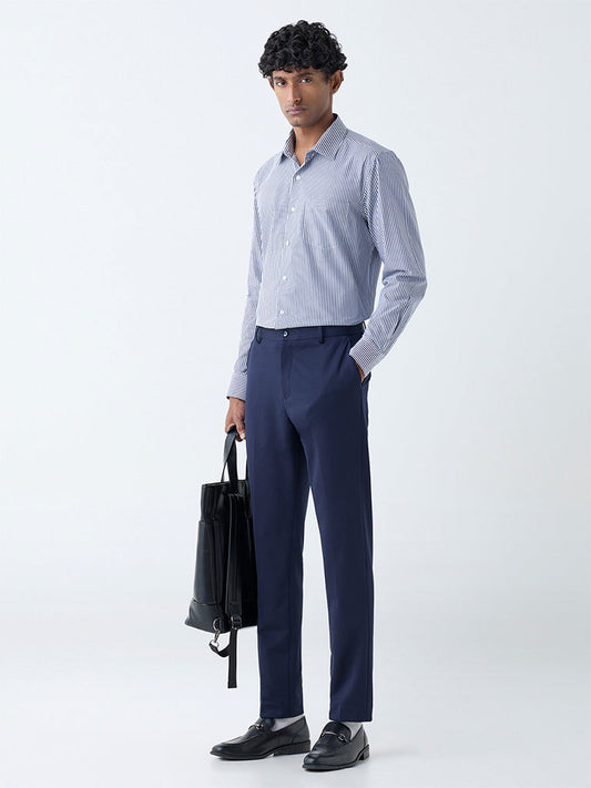 WES Formals Navy Striped Slim-Fit Cotton Shirt