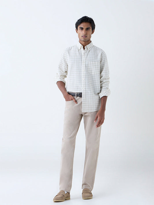 Nuon Beige Checkered Relaxed-Fit Cotton Shirt