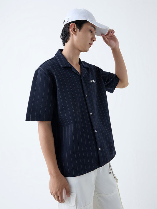 Nuon Navy Pinstriped Relaxed-Fit Shirt
