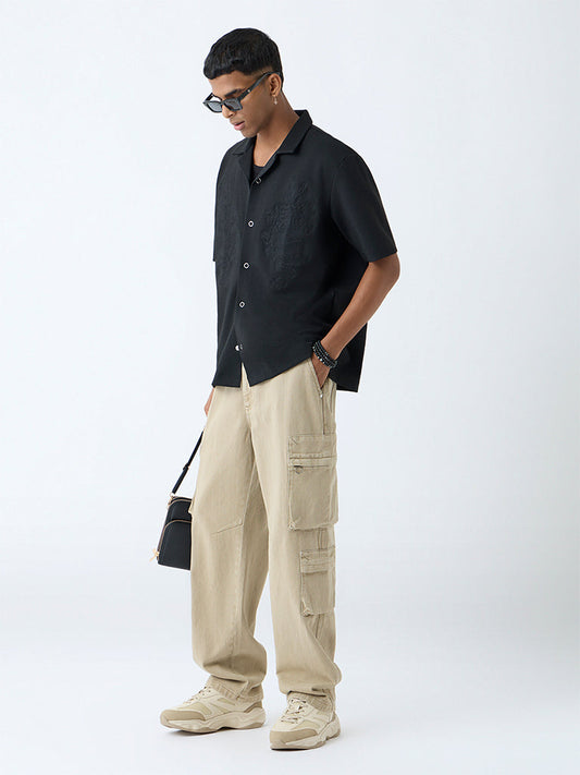Nuon Black Embroidered Relaxed-Fit Shirt