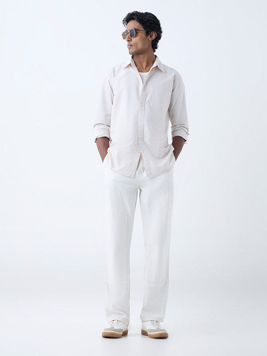WES Casuals White Striped Relaxed-Fit Cotton Shirt