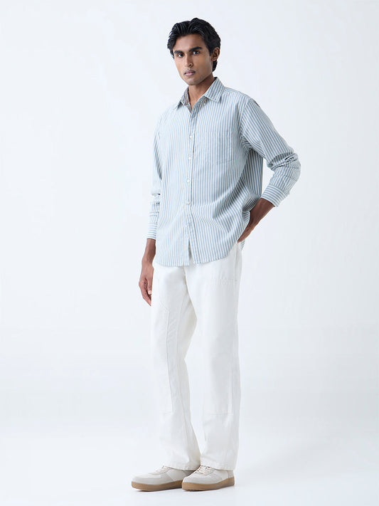 WES Casuals Sage Striped Relaxed-Fit Cotton Shirt