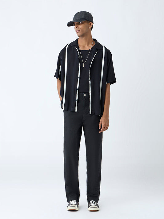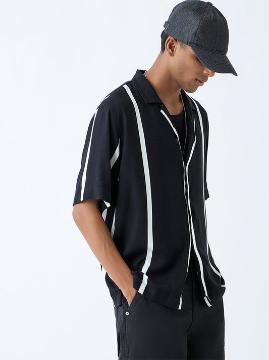 Nuon Black Striped Relaxed-Fit Shirt