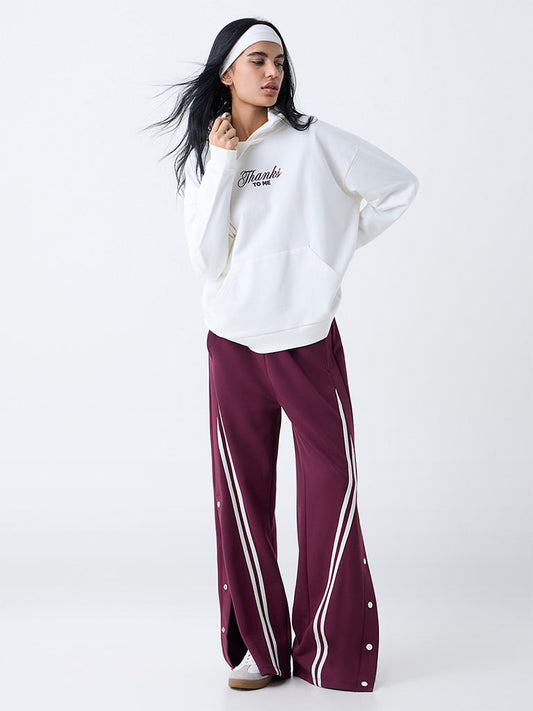 Studiofit Off-White Text Design Cotton Hoodie