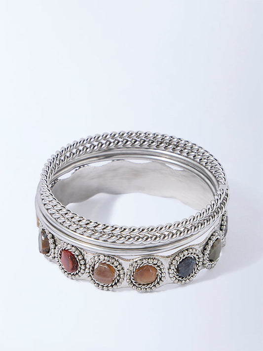 Westside Accessories Silver Gemstone-Detailed Bangles Set - Pack of 5