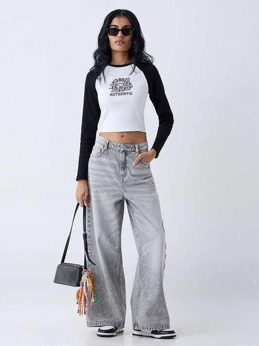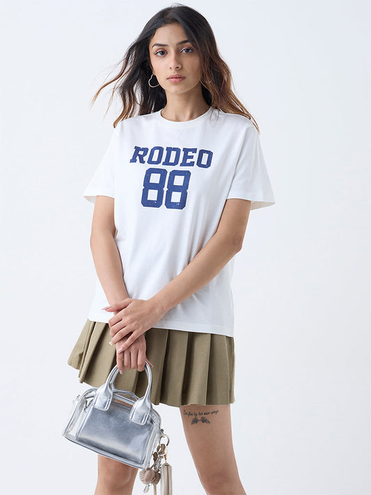 Nuon White Text Printed Cotton-Blend T-Shirt