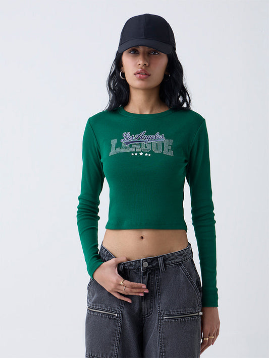 Nuon Dark Green Text Design Cotton-Blend T-Shirt