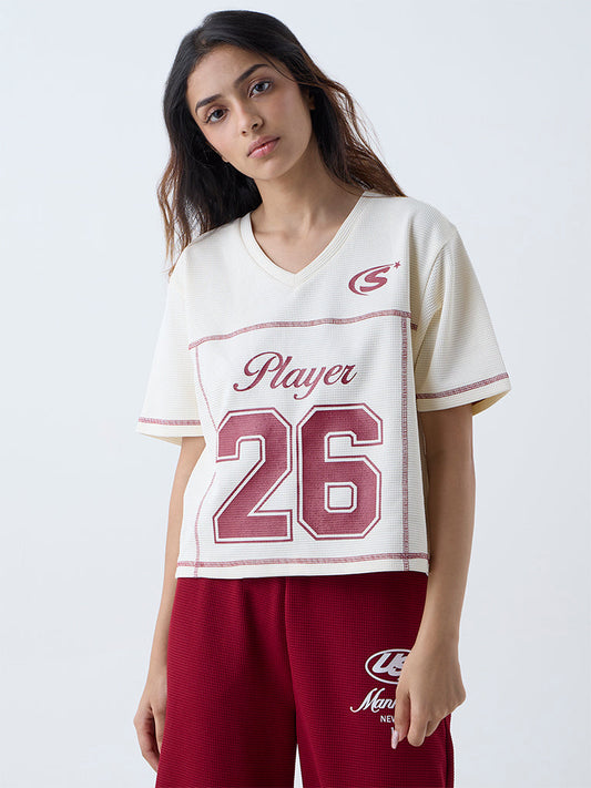 Studiofit Cream Waffle-Textured T-Shirt