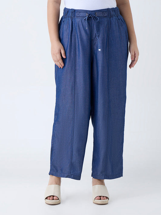 Gia Dark Blue High-Rise Chambray Pants