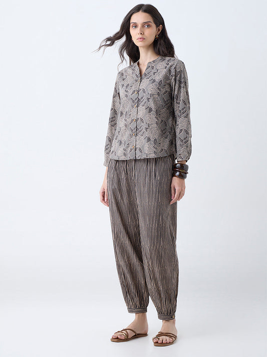 Utsa Charcoal Botanical Design Cotton Straight Kurta