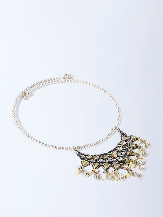 Westside Accessories Silver Glass-Detailed Heavy Pendant Choker Necklace